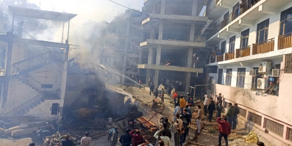 हमीरपुर जिला मुख्यालय में डीसी ऑफिस के साथ लगते मृदुल चौक के पास स्थित एक स्लेटपोश मकान में गुरुवार दोपहर अचानक आग लग गई। आग इतनी भयानक थी कि देखते ही देखते मकान के तीन कमरे पूरी तरह जलकर राख हो गए। इस हादसे में मकान मालिकों को करीब 10 लाख रुपये के नुकसान का अनुमान लगाया जा रहा है।प्रत्यक्षदर्शियों के अनुसार मृदुल चौक के सामने टिम्बर डिपो के पास बने इस मकान से अचानक धुआं और आग की ऊंची लपटें उठने लगीं। आग की सूचना मिलते ही डीसी अमरजीत सिंह, एसपी बलबीर सिंह और एडीसी अभिषेक गर्ग सहित अन्य वरिष्ठ अधिकारी तुरंत मौके पर पहुंचे। डीसी अमरजीत सिंह ने बताया कि ऑफिस से धुआं उठता देख वह स्वयं स्थिति का जायजा लेने पहुंचे थे।स्थानीय लोगों की सूचना पर अग्निशमन विभाग की दो गाड़ियां मौके पर पहुंचीं और कड़ी मशक्कत के बाद आग पर काबू पाया गया। घटना मुख्य सड़क के किनारे होने के कारण कुछ समय के लिए हमीरपुर–सुजानपुर हाईवे पर यातायात बाधित रहा, जिसे बाद में सामान्य कर दिया गया।पुलिस के अनुसार आग राकेश कुमार और विनोद कुमार पुत्र तुलसी राम के मकान में लगी, जहां कश्मीरी मजदूर किराए पर रह रहे थे। राहत की बात यह रही कि हादसे में कोई जानी नुकसान नहीं हुआ और सभी मजदूर सुरक्षित हैं, हालांकि उनका सारा सामान और मकान का ढांचा पूरी तरह जल गया।मकान मालिकों ने प्रशासन से मुआवजे की मांग की है। वहीं डीसी अमरजीत सिंह ने संबंधित विभागों को नुकसान का आकलन कर प्रभावित परिवार को मुआवजा और फौरी राहत देने के निर्देश दिए हैं। पुलिस आग लगने के कारणों की जांच में जुटी हुई है।